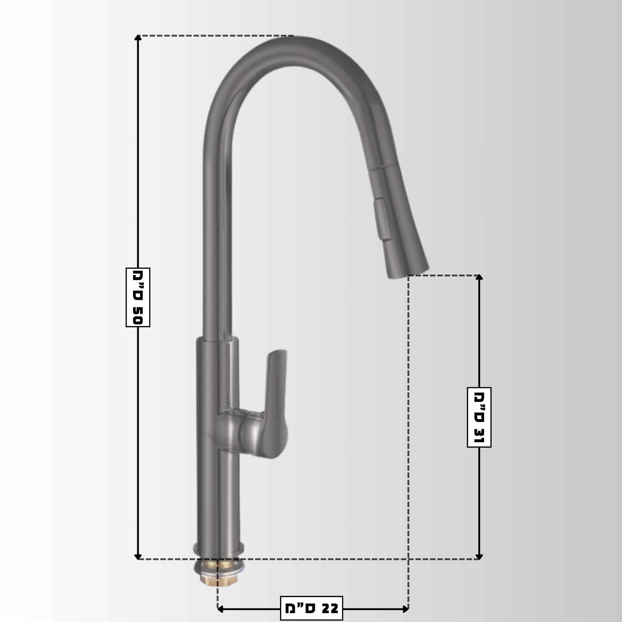 ברז מטבח נשלף עם פייה בעלת 2 מצבי זרימה – אפור מט (גרפיט)