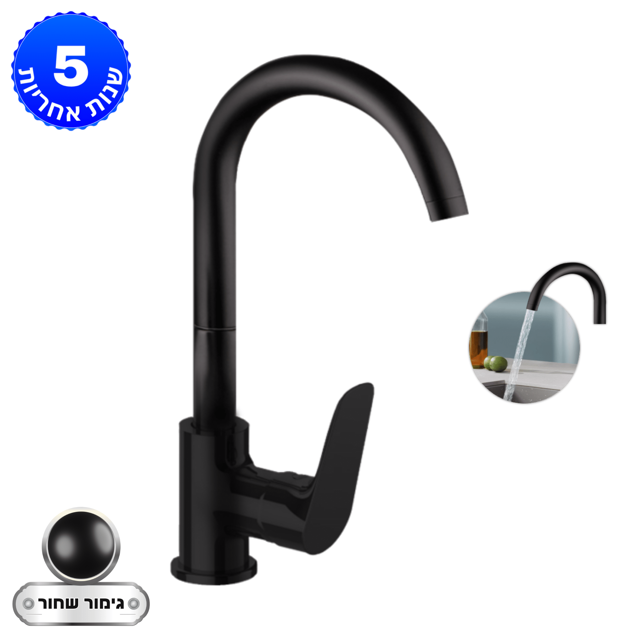 ברז ערבוב ניצב לכיור רחצה פיה קצרה בגימור שחור