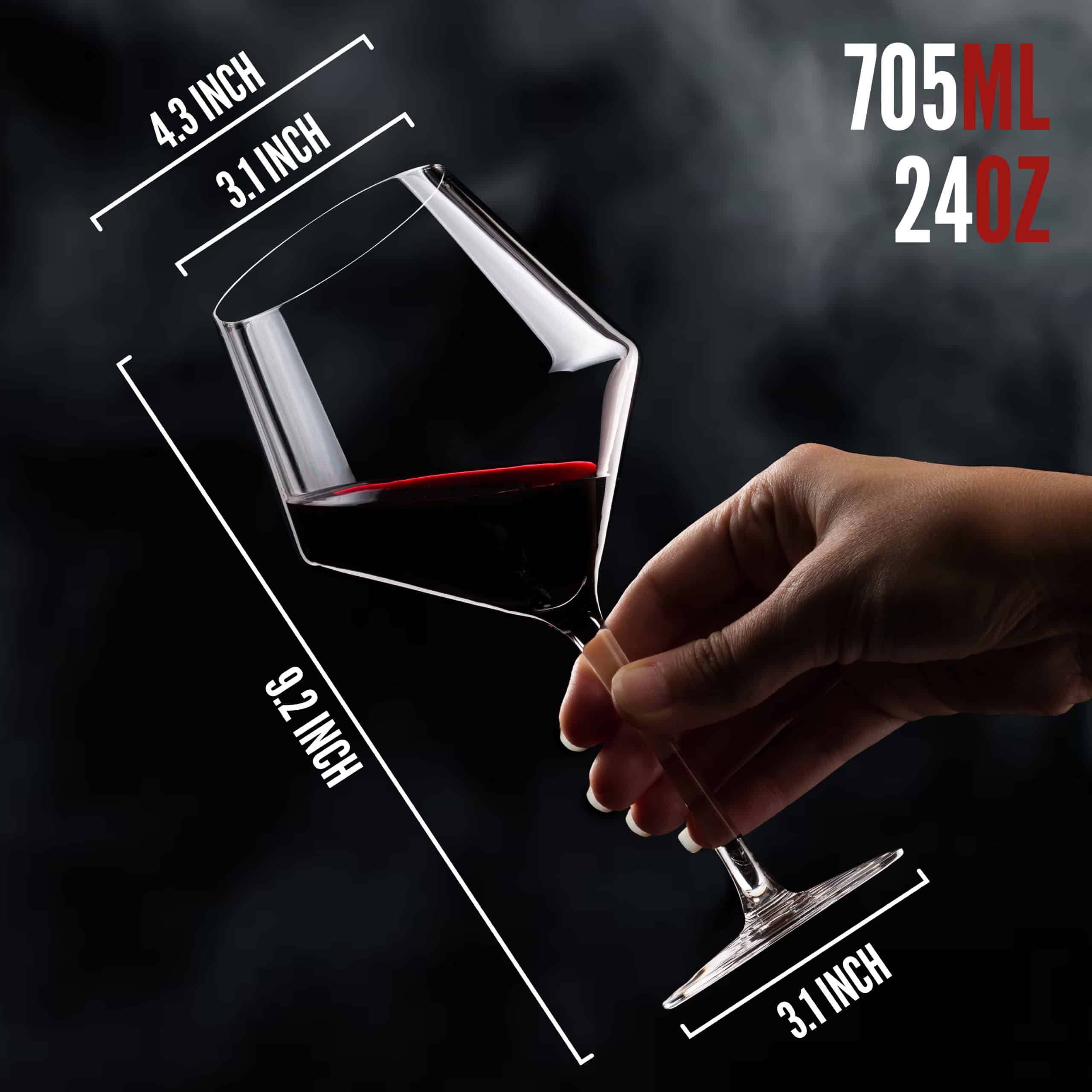 זוג כוסות יין קריסטל מפוארות ומעוצבות – 705 מ"ל