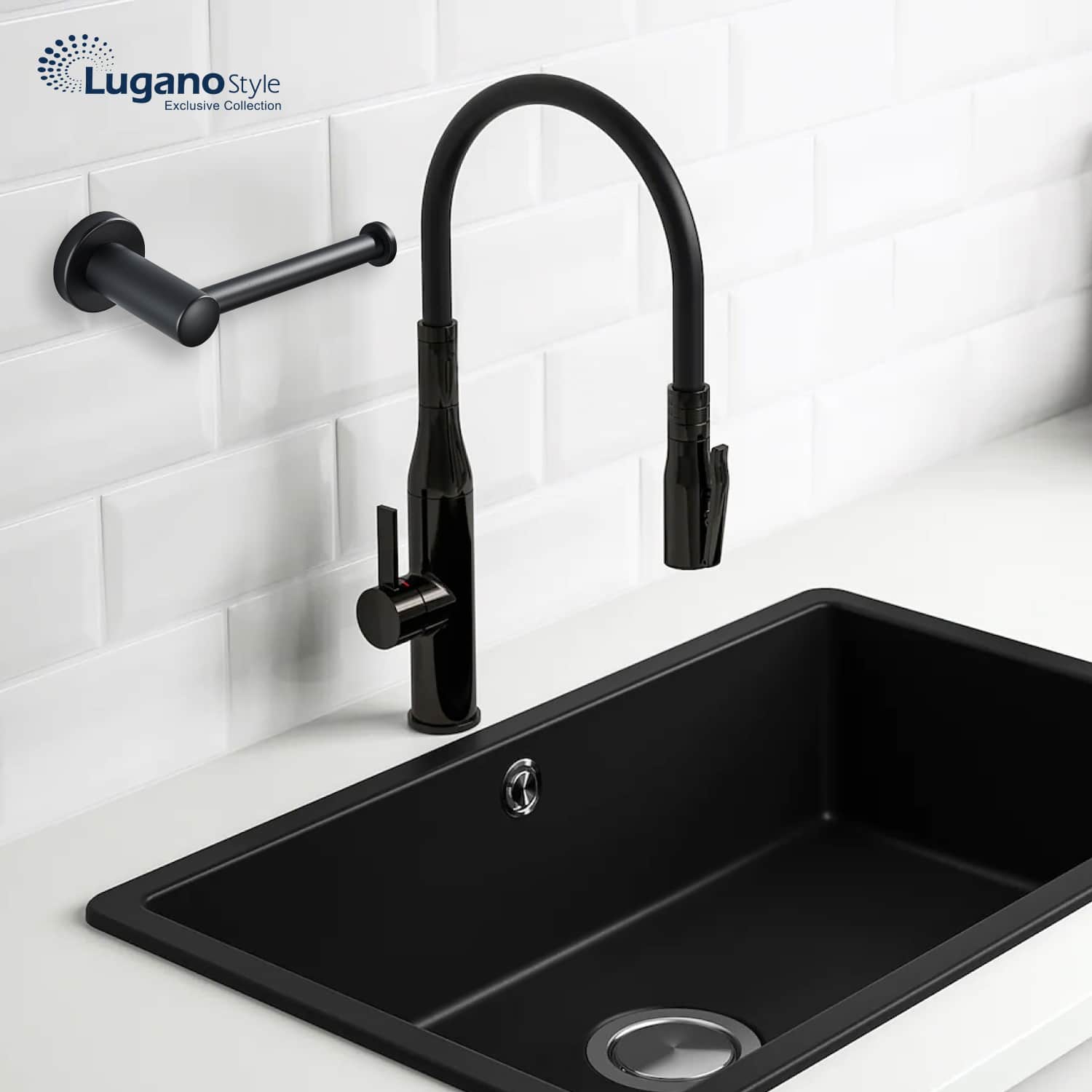 מחזיק נייר טואלט לשירותים נירוסטה שחור