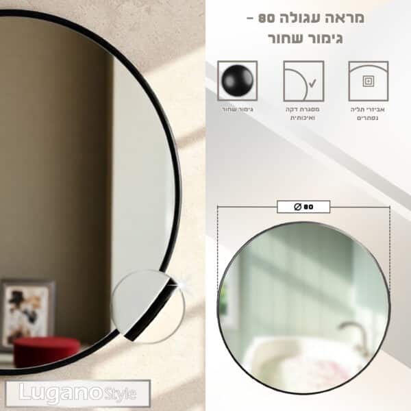 מראה עגולה – שחורה – 80 ס"מ