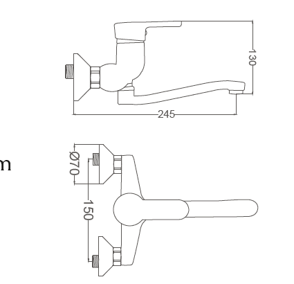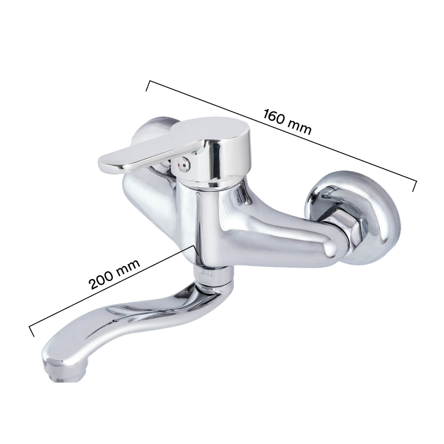 סוללת ברז קיר עם פיה תחתונה ארוכה מסתובבת – כרום