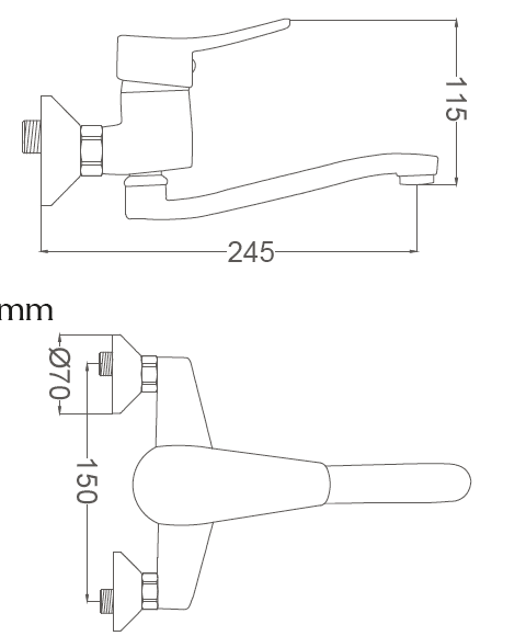 סוללת ברז קיר עם פיה תחתונה ארוכה מסתובבת