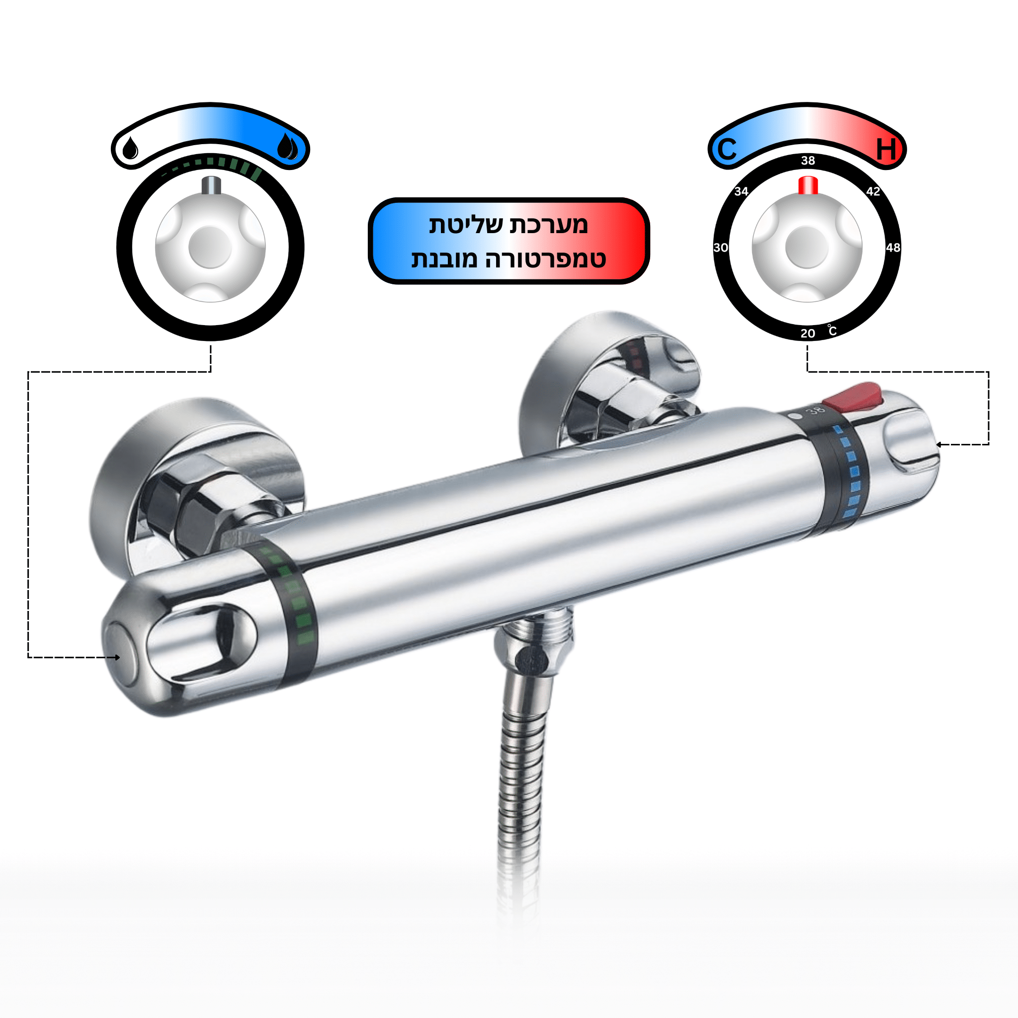 סט מערכת רחצה למקלחת משולבת ראש גשם עם מזלף + צינור, מוט מתכוונן עם בורר מצבים וסבוניה. דגם לוקה