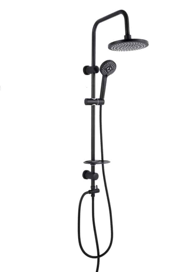 סט מערכת רחצה למקלחת משולבת ראש גשם עם מזלף + צינור, מוט מתכוונן עם בורר מצבים וסבוניה. דגם SUPER MAXIMO BLACK סופר מקסימו צבע שחור