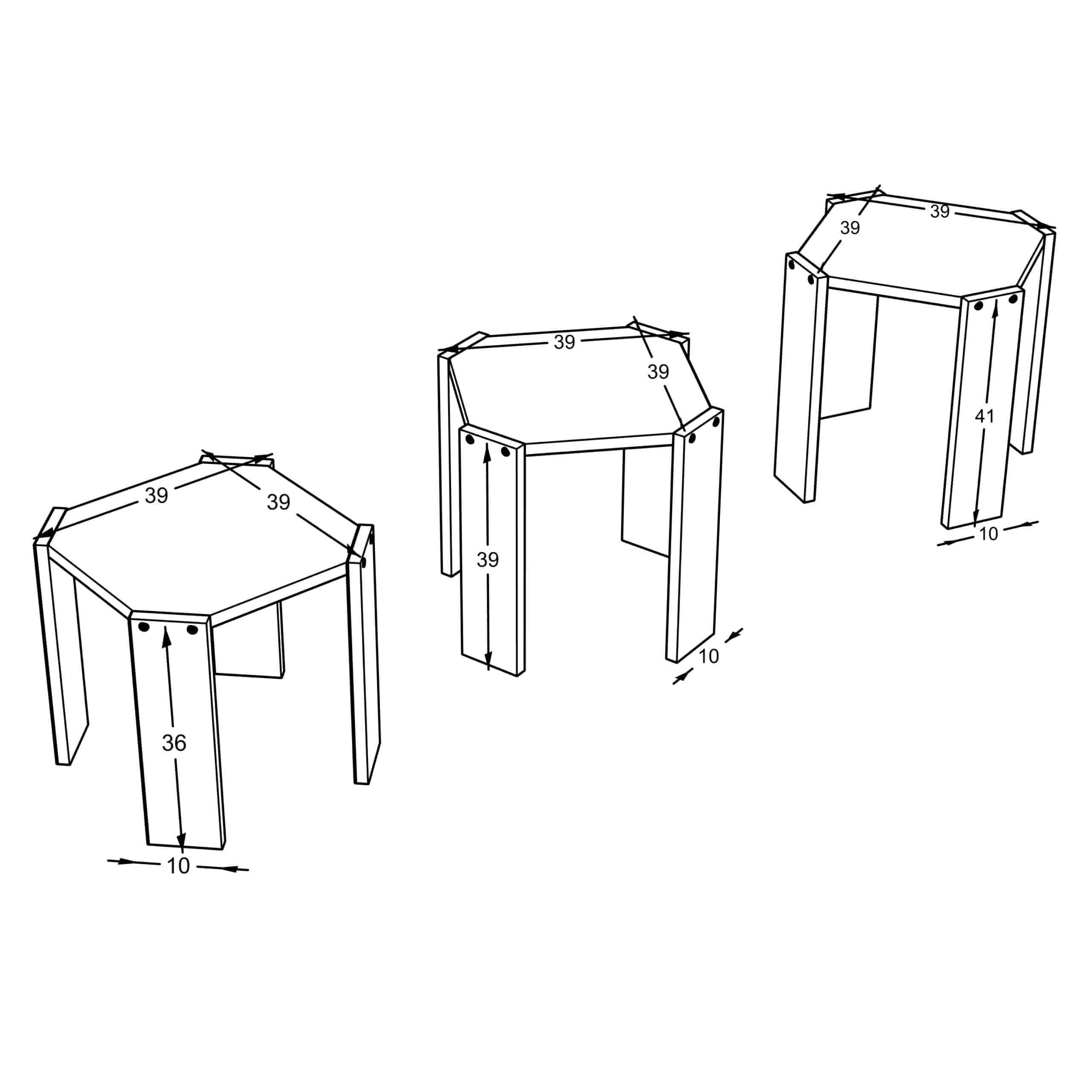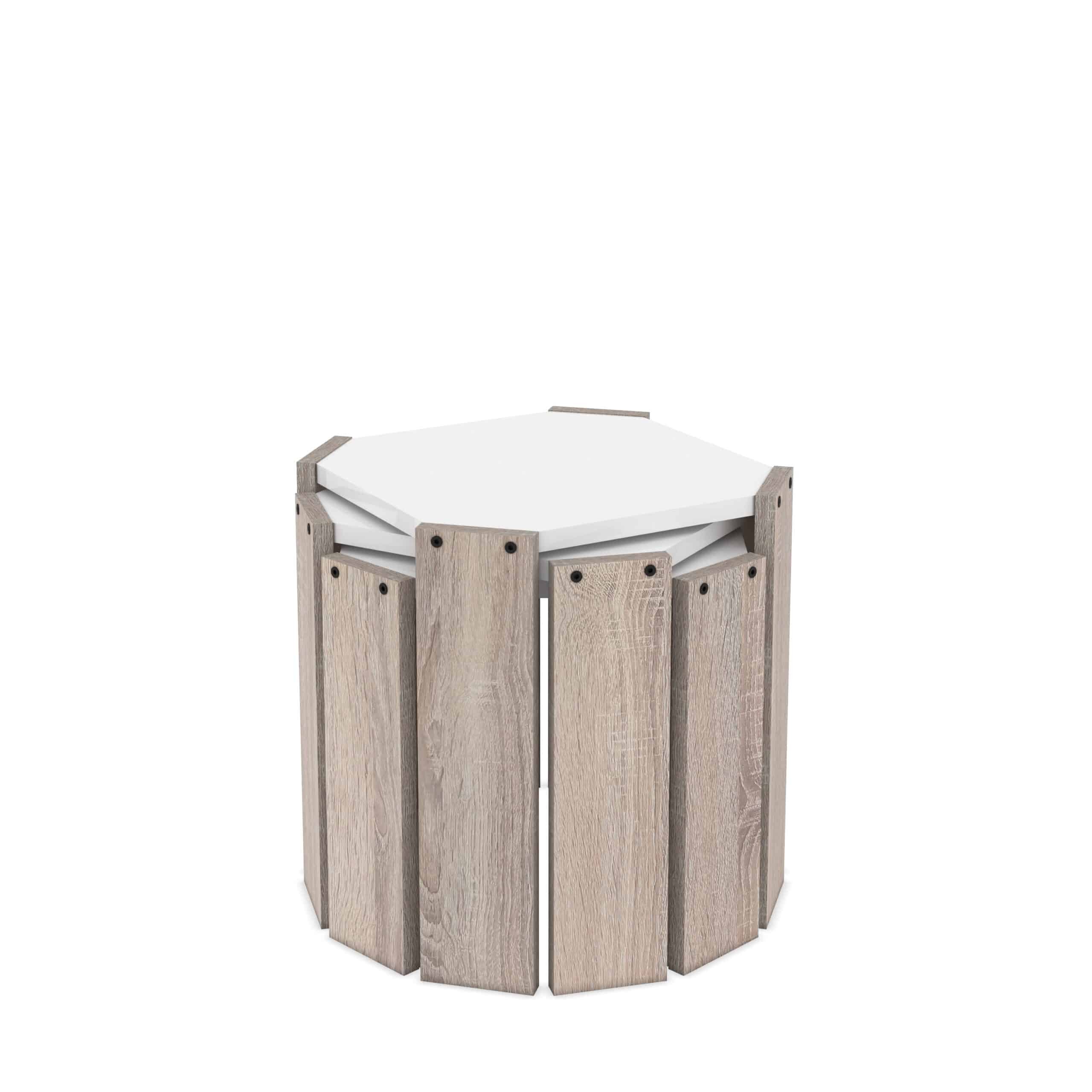 סט 3 שולחנות לסלון מתפצלים עם רגלי עץ אלון בהיר דגם שפי
