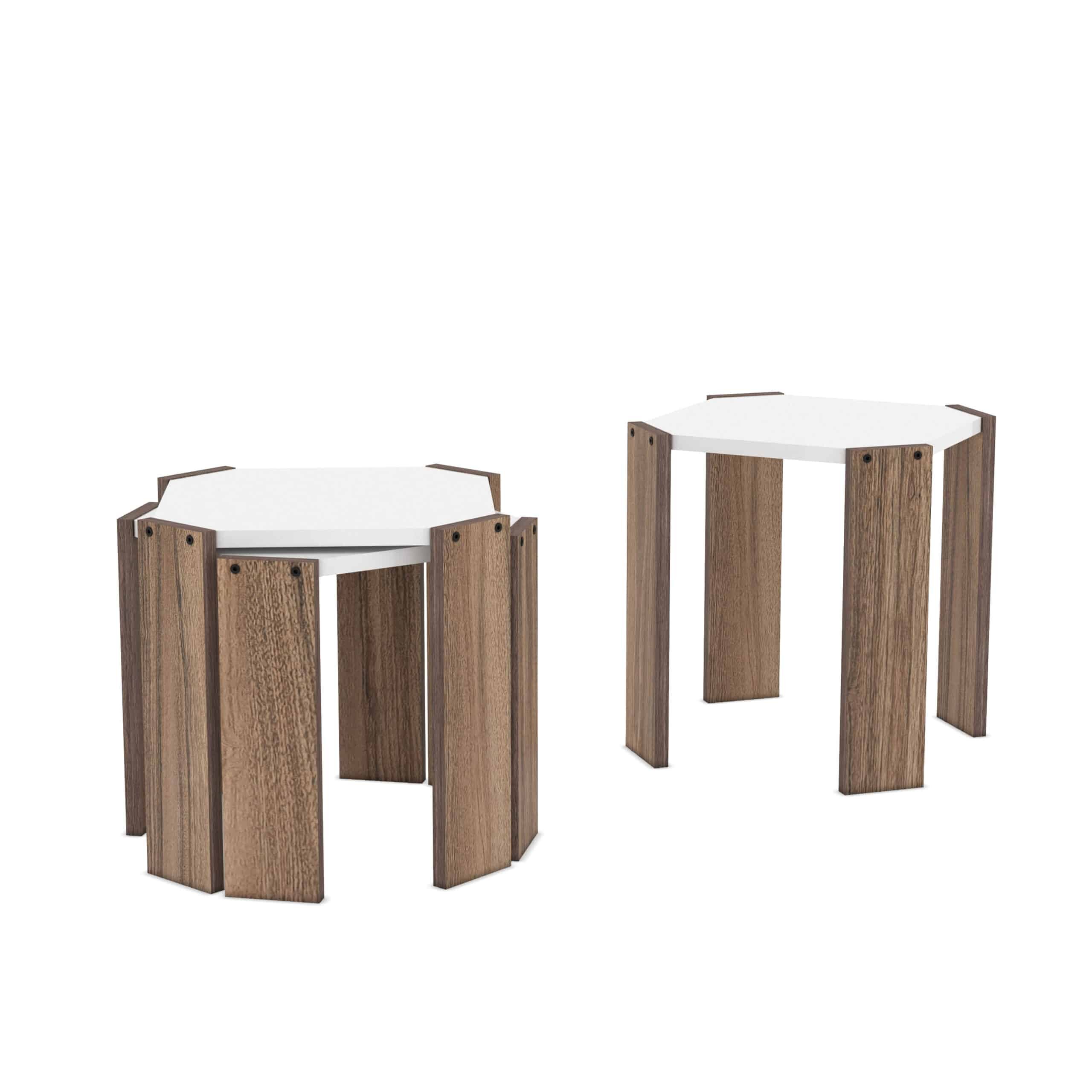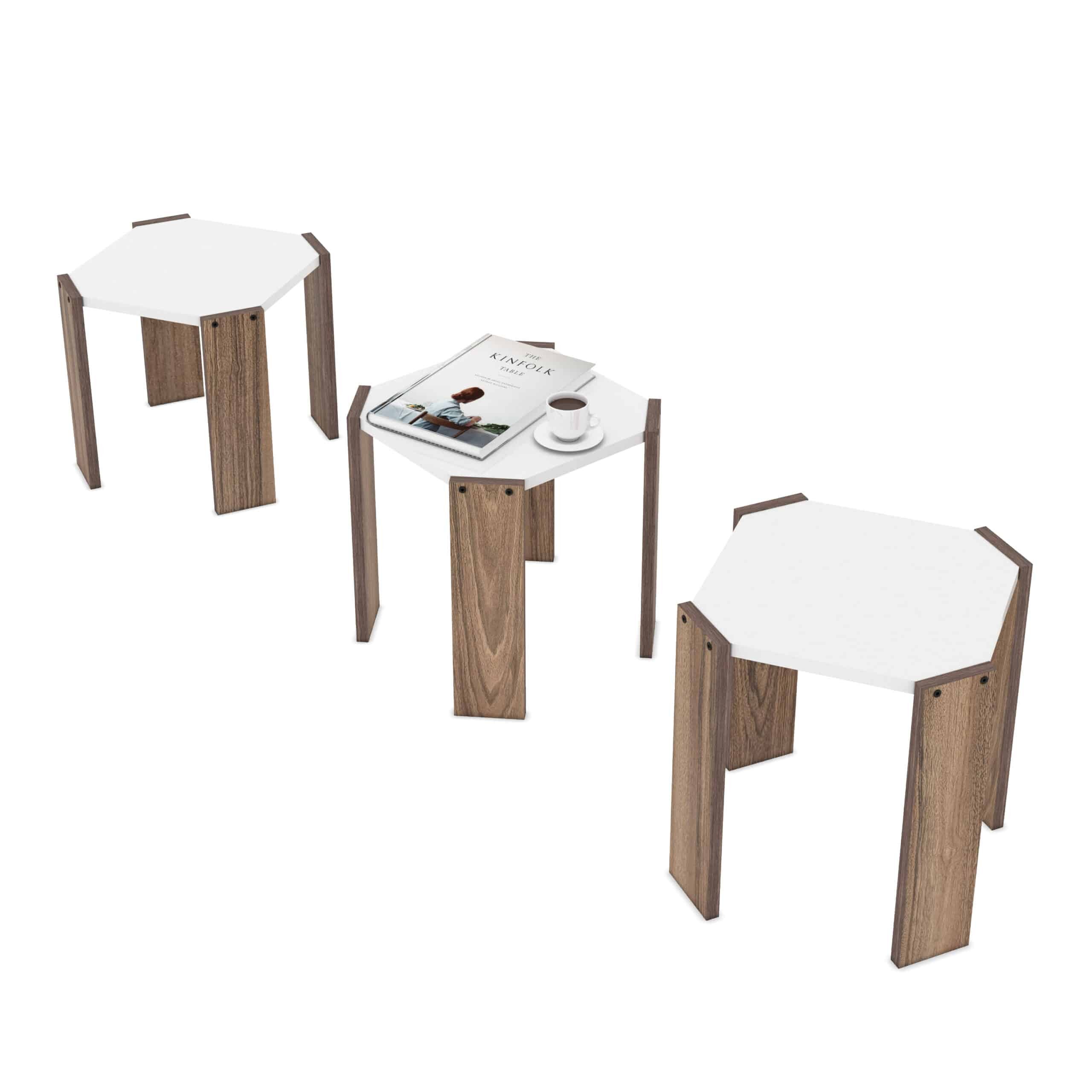 סט 3 שולחנות לסלון מתפצלים עם רגלי עץ אלון דגם אורי