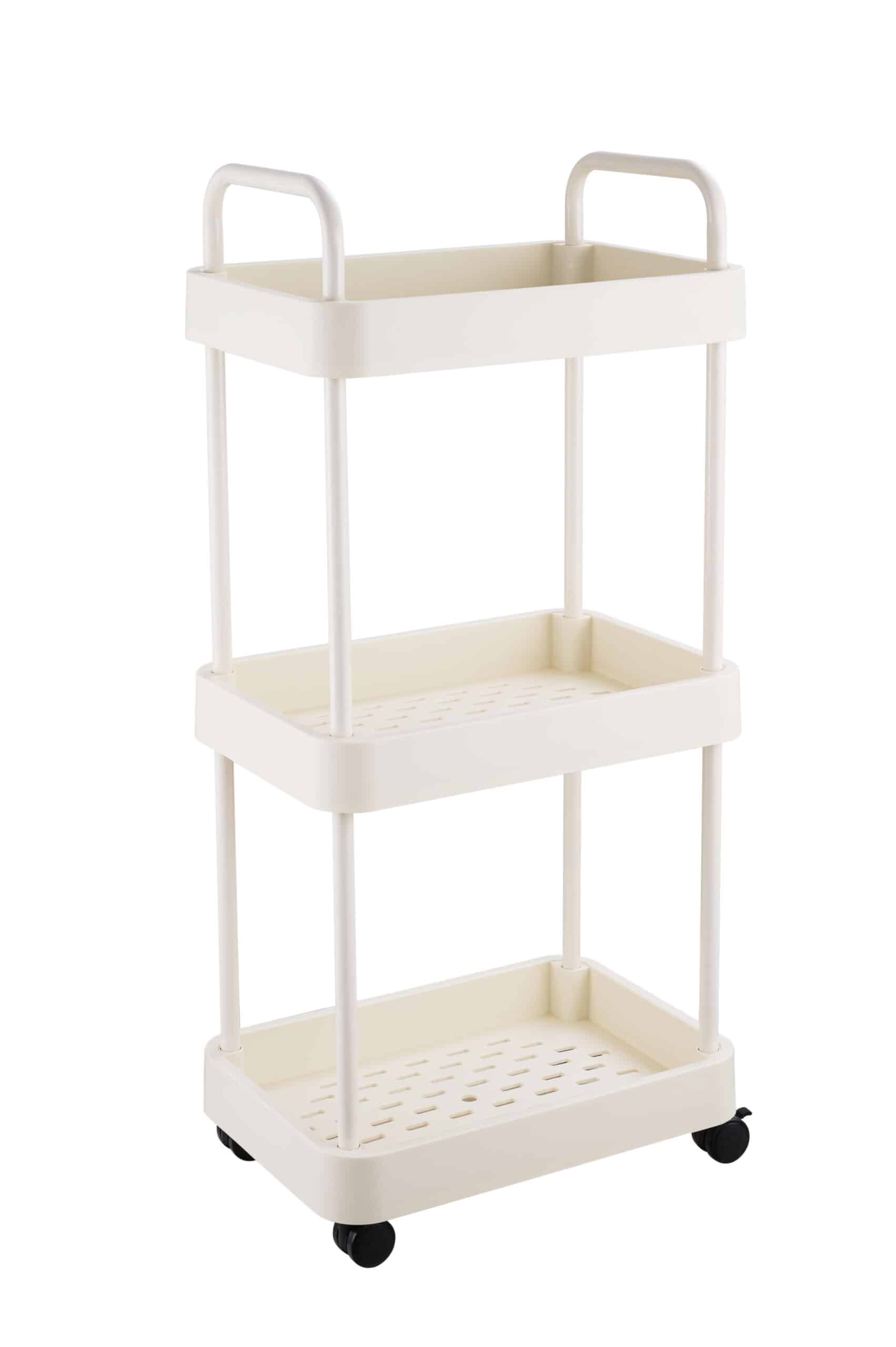 עגלת אחסון שלוש קומות עם גלגלים לבן מדף נמוך