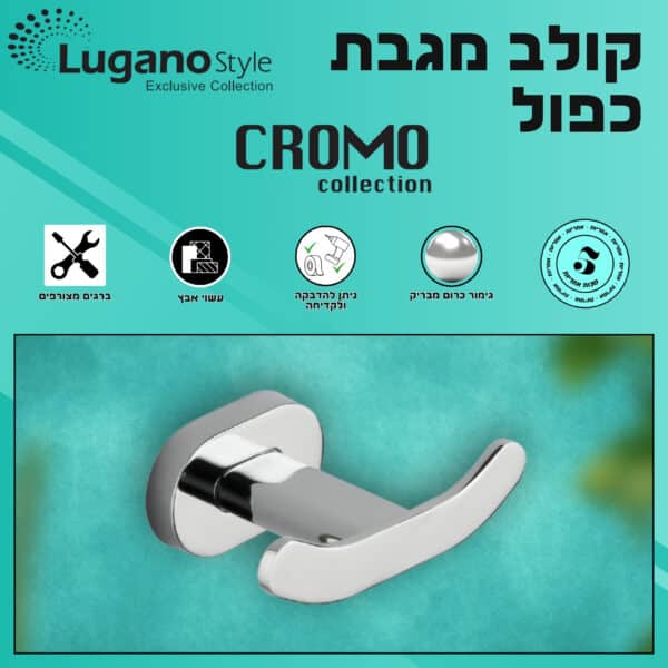 – קולב זוגי למגבת מסדרת אביזרי אמבטיה איכותיים CROMO.