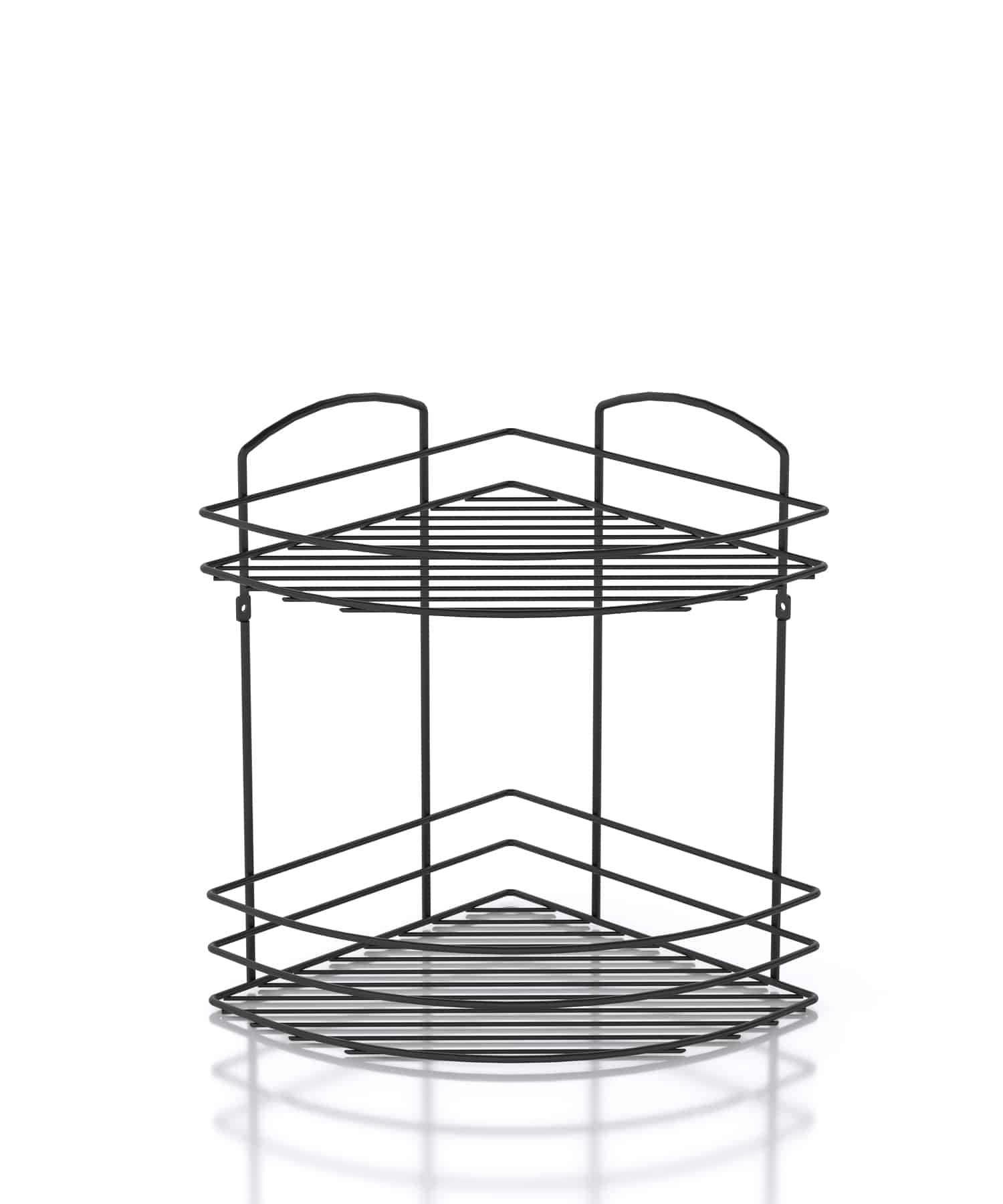 מדף רשת פינתי 2 קומות – כרום שחור
