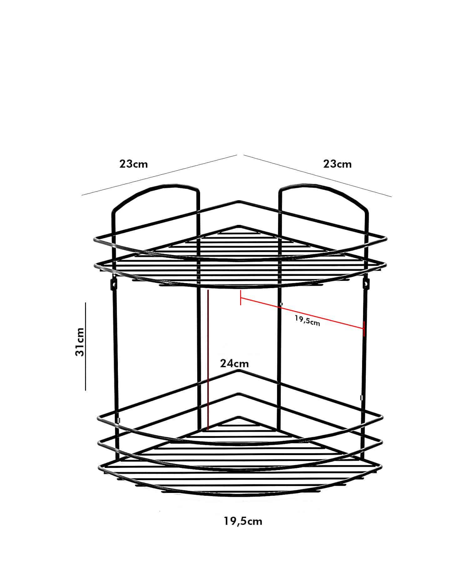 רשת פינתית – 2 קומות לחדר הרחצה והמקלחת ניתן לתליה בפינה שמאלית או ימנית.